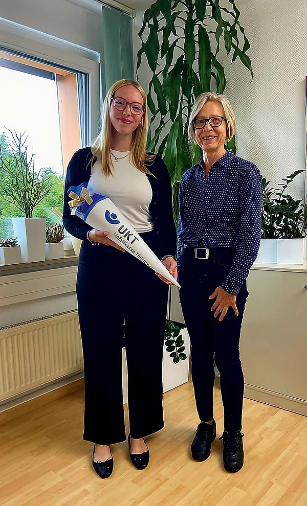 Frau Kästner absolviert seit 01.09.2025 ein duales Bachelor-Studium im Fach Sozialversicherung, Schwerpunkt Unfallversicherung in der UKT und an der HGU Bad Hersfeld. Unsere Geschäftsführerin Frau Dexheimer hat Frau Kästner zum Start des Studiums mit einer Zuckertüte überrascht.